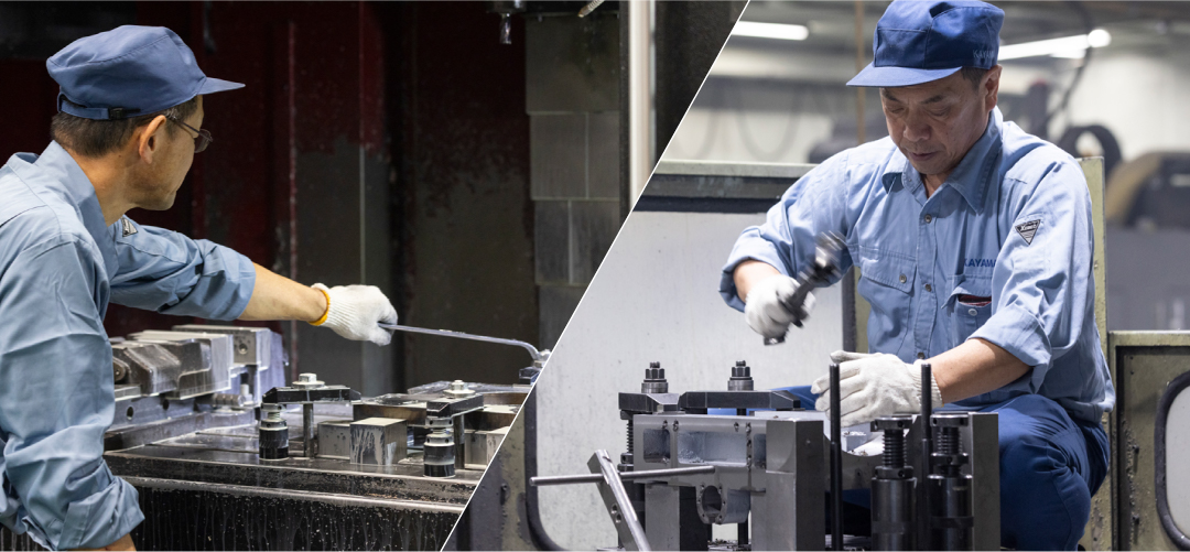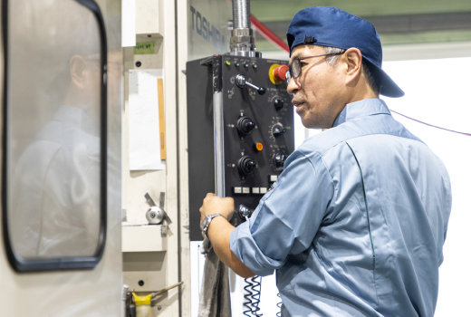 マシニングセンターなどの加工機を使い、機械部品の高精度加工を実現。